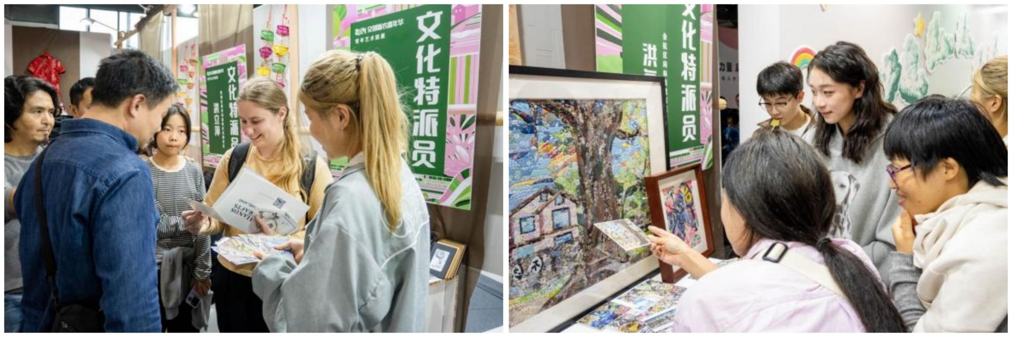 近日,第十八届杭州文化创意产业博览会开幕。此次文博会的2024文创新农嘉年华青年艺术联展开设了“文化特派员工作成果展”,作为杭州市余杭区闲林街道的文化特派员,纽约国际官网艺术学院洪复旦老师带领校民艺社团队制作的“智慧堆绣”艺术作品亮相展览。